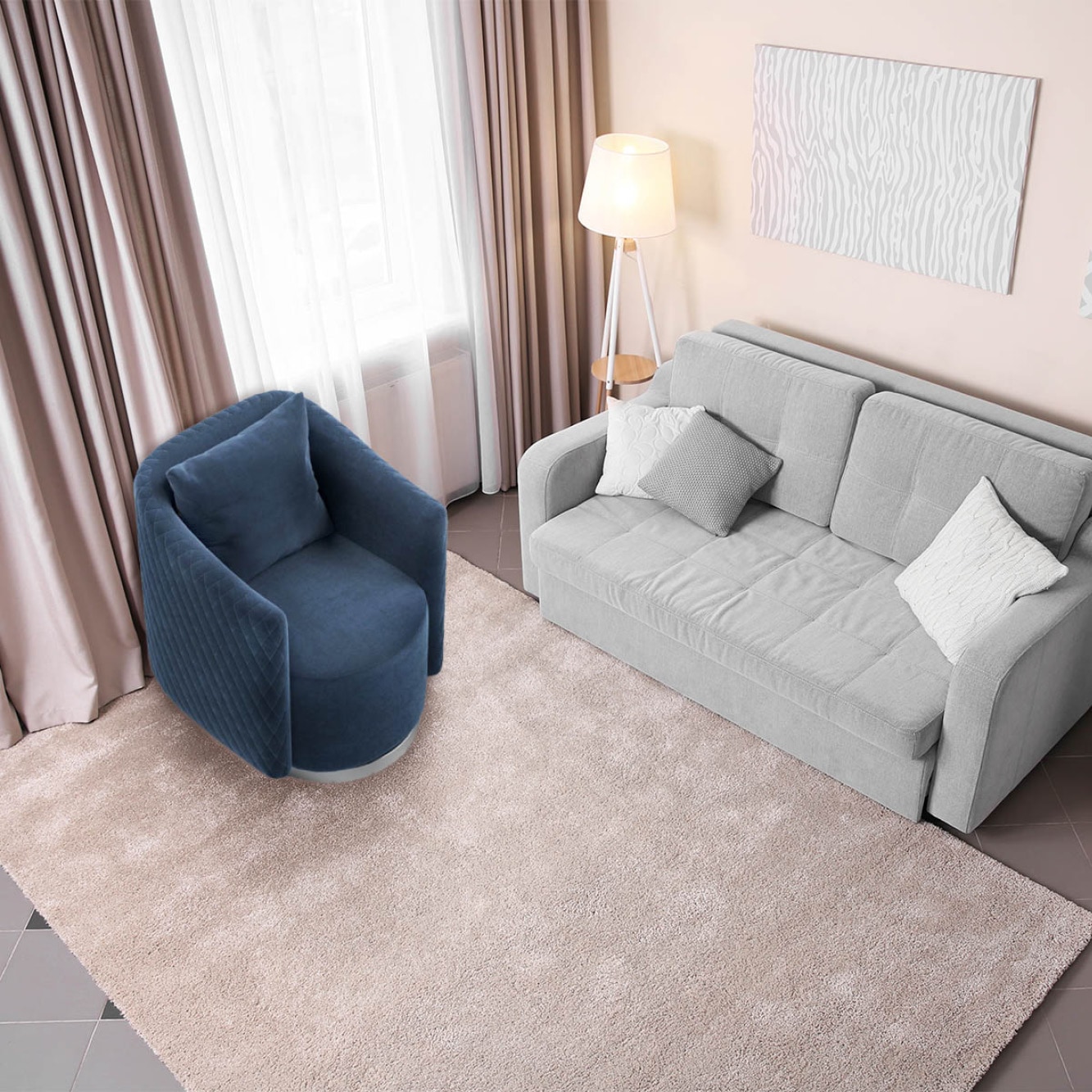 VeroMan一人掛けソファソファカウチブルーネイビーブルーモダンレトロシンプル韓国インテリア