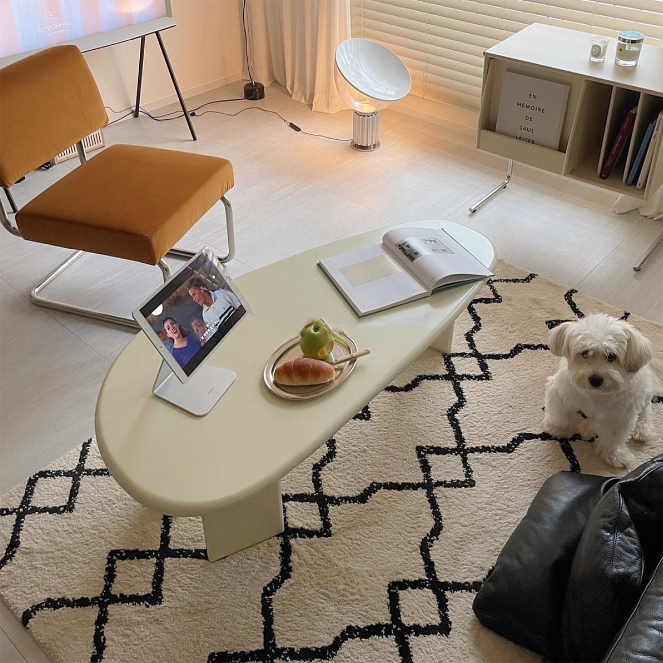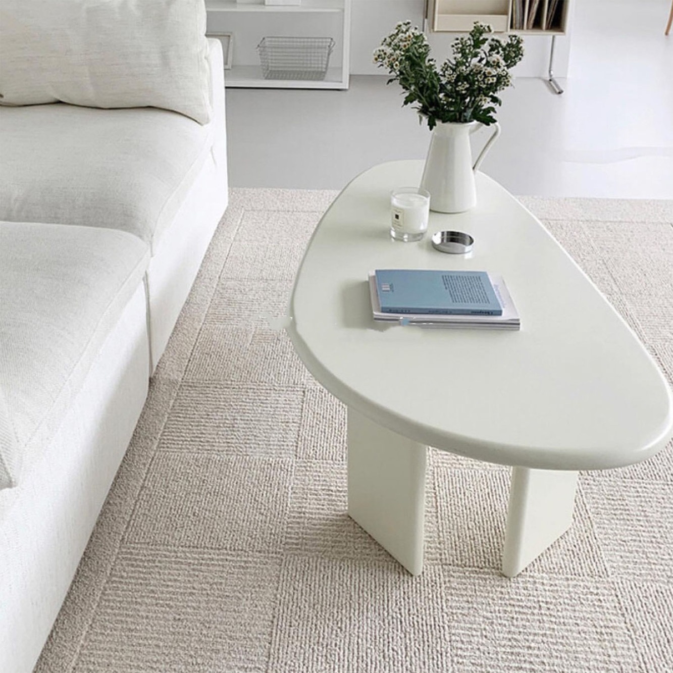 VeroMan[120cm]テーブルローテーブルコーヒーテーブルクリームリビングルーム卵型シンプルモダンレトロ韓国インテリア