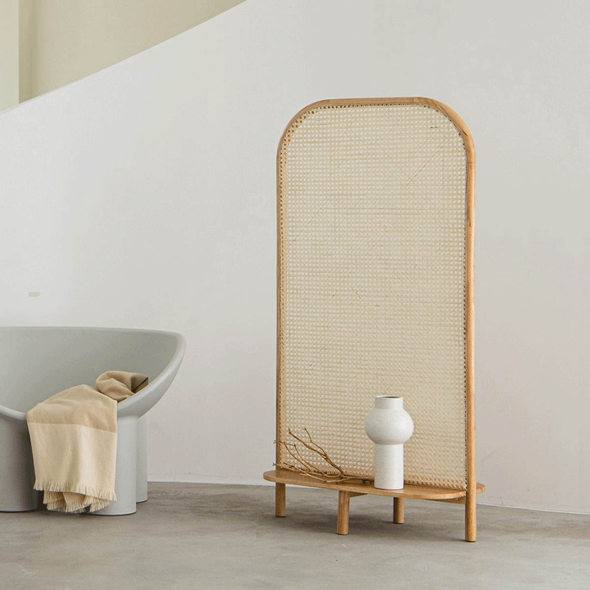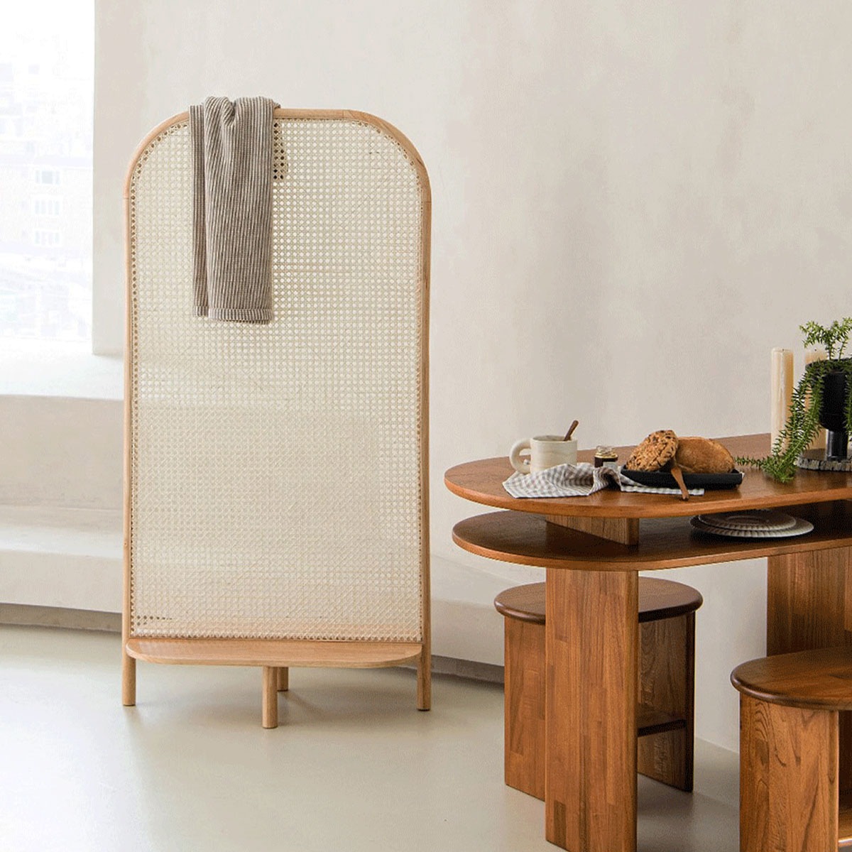 [140cm]VeroManラタン編みラック屏風ラタン編み屏風屏風ラック棚壁に立てかけるディスプレイラックコーナーラック安定設定天然籐韓国インテリア