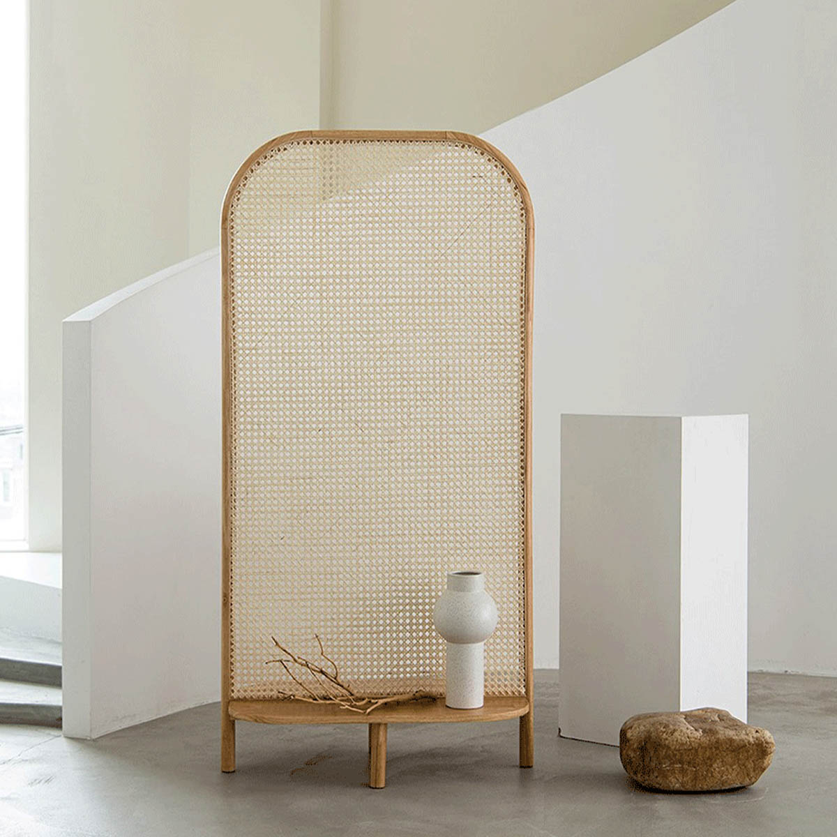 [110cm] VeroMan ラタン編みラック 屏風 ラタン編み屏風 屏風ラック棚 壁に立てかける ディスプレイラック コーナーラック 安定設定 天然籐 韓国インテリア 収納・TVボード