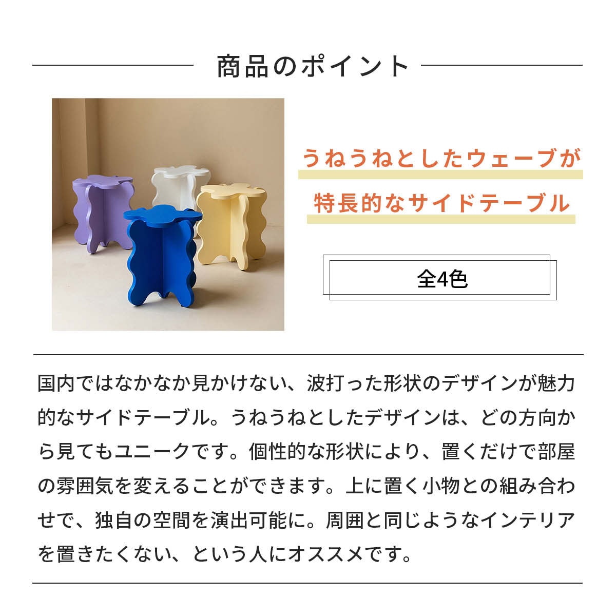 国内ではなかなか見かけない、波打った形状のデザインが魅力的なサイドテーブル。 うねうねとしたデザインは、どの方向から見てもユニークです。 個性的な形状により、置くだけで部屋の雰囲気を変えることができます。 上に置く小物との組み合わせで、独自の空間を演出可能に。 周囲と同じようなインテリアを置きたくない、という人にオススメです。 |