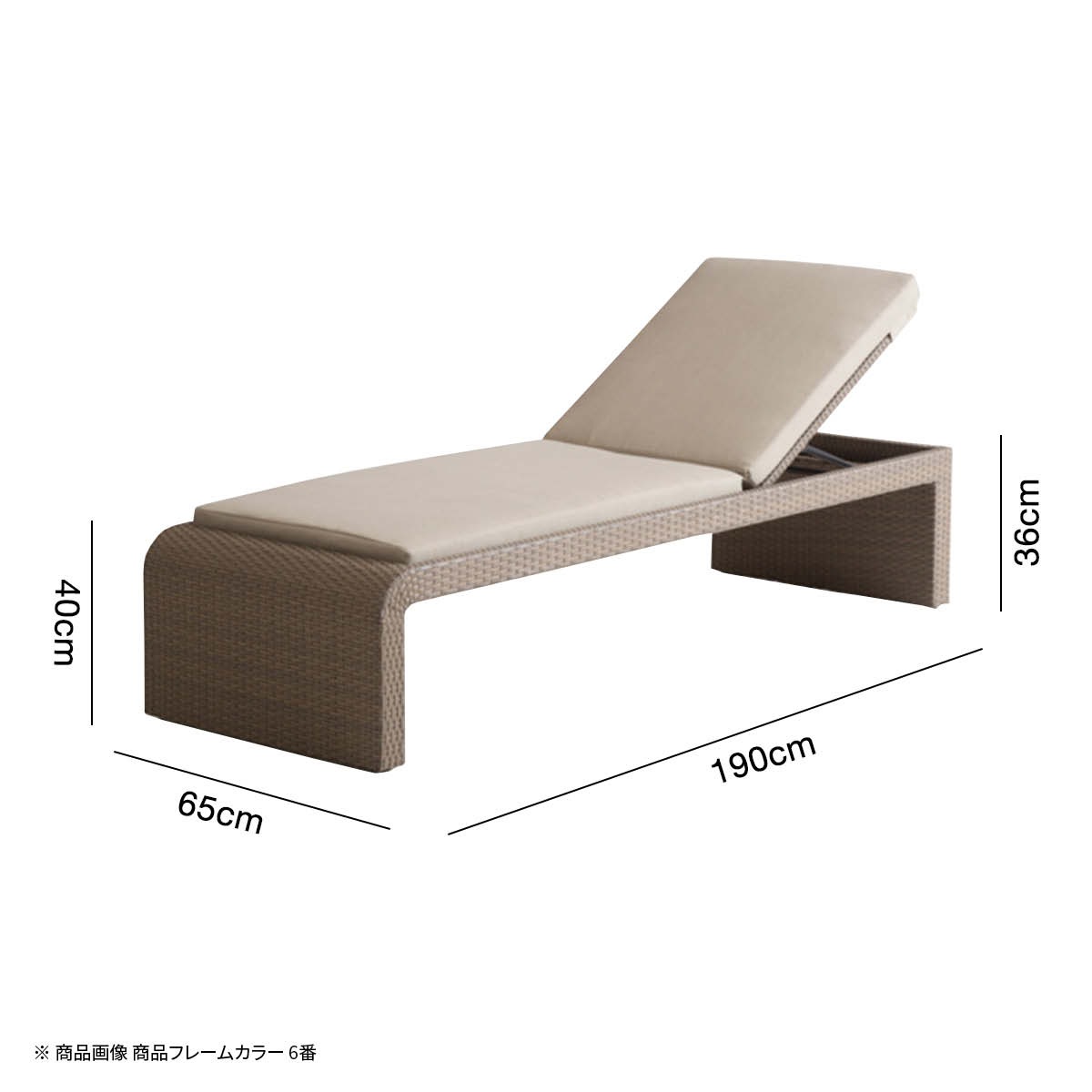 | サイズ | 横幅65cm 奥行き190cm 高さ36cm クッションを含めた高さ40cm |