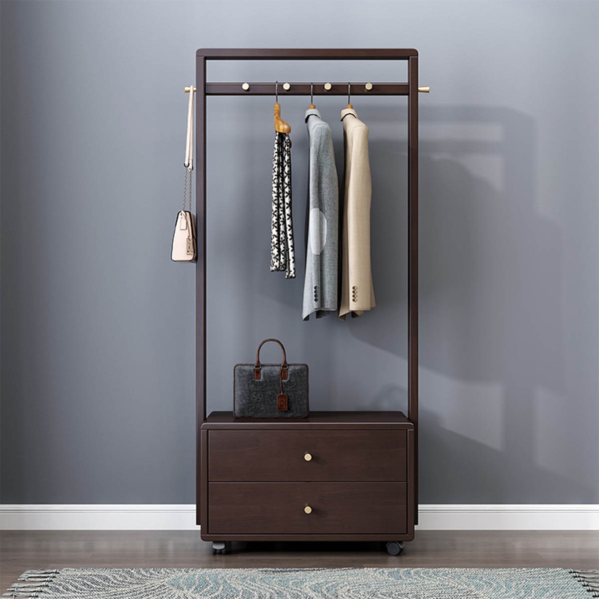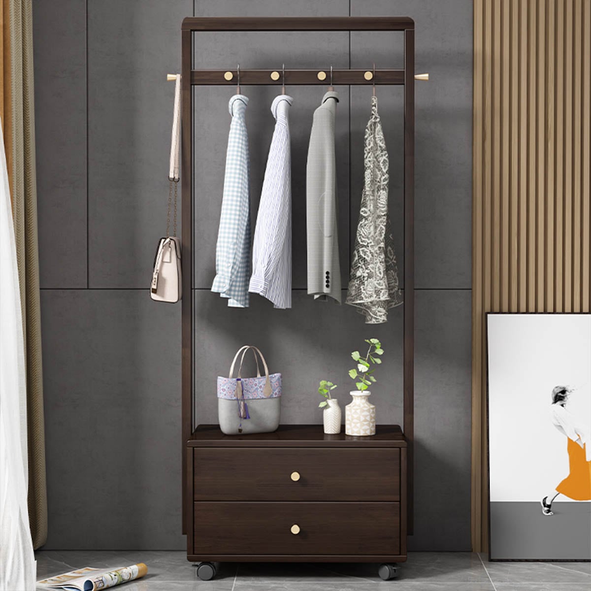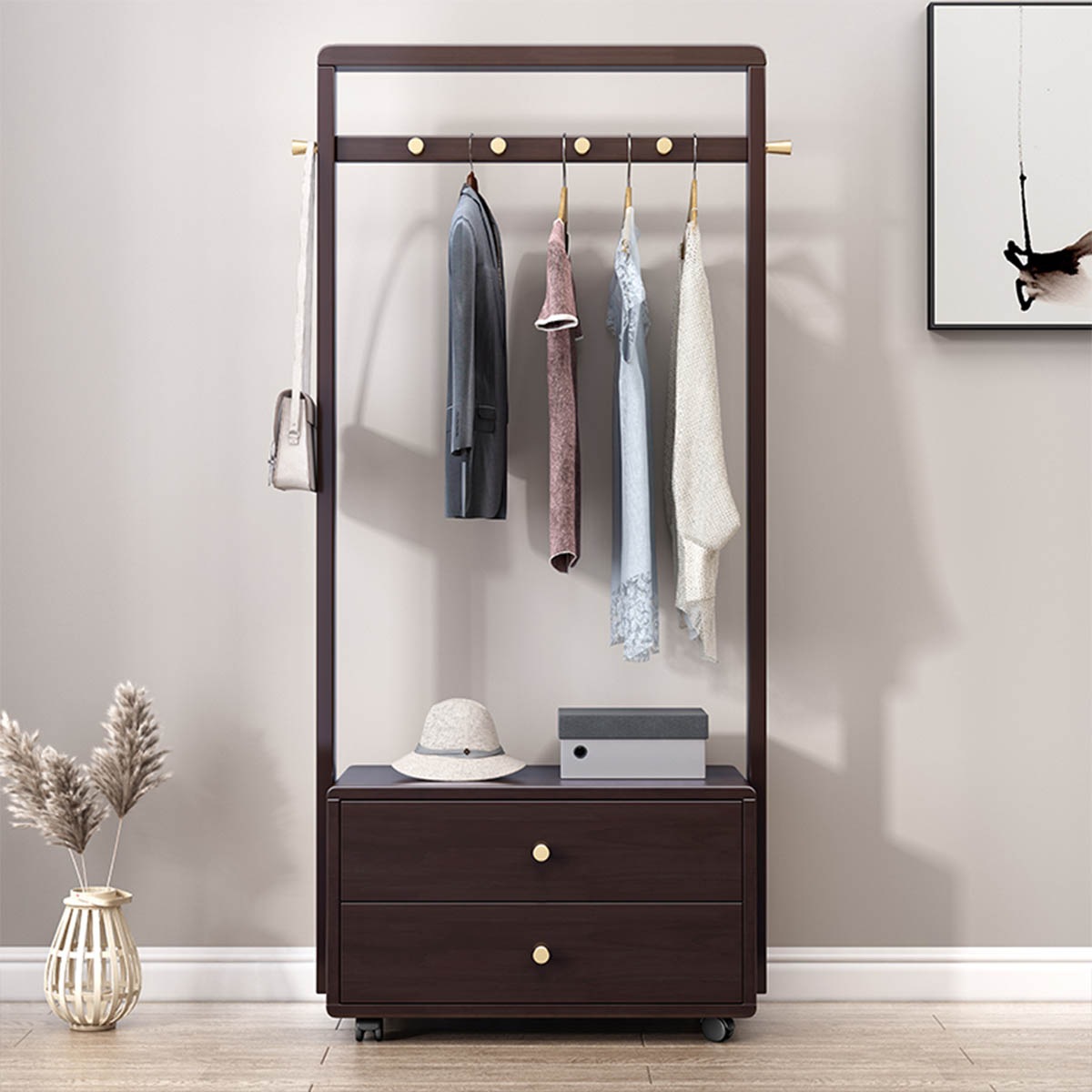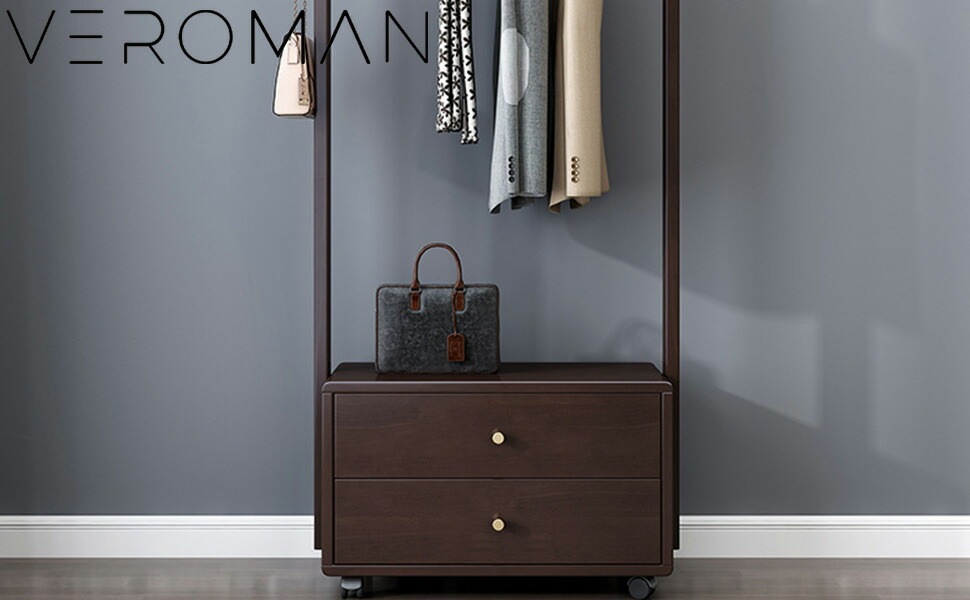 [ブラウン]VeroMan収納ラックコートラック洋服ラック収納洋服物干し竿収納収納棚シンプルモダンレトロ韓国インテリア