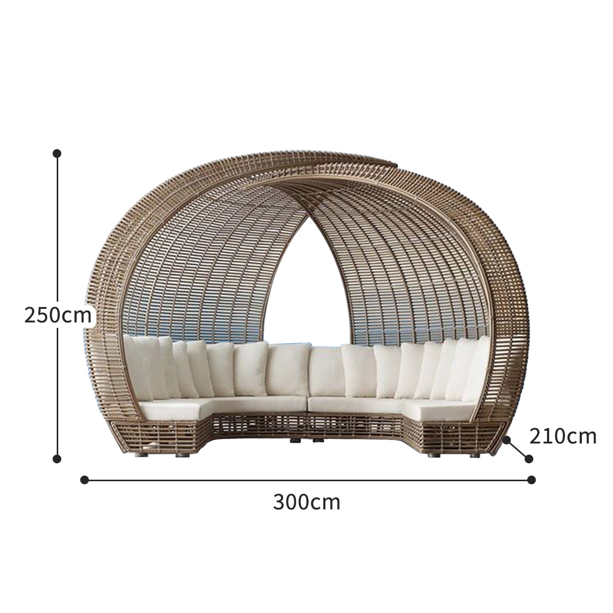 奥行き210cm 横幅300cm 高さ250cm クッション大: 50×50cm クッション小: 45×45cm |