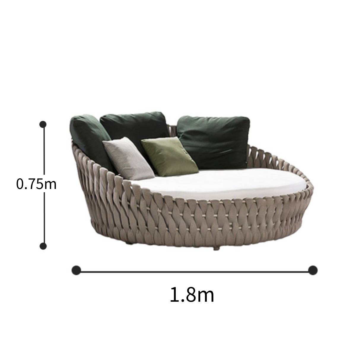 ・このベッドソファは適度な弾力と深さがあり、体を包み込むような座り心地が特徴です。 ・柔らかくすぎず程の良い座り心地はクセになりそう! ・耐久性に優れていて、長くお使いいただけるソファです。 ・室内だけでなく屋外(ベランダ、庭、プールサイド等)でも使うことが出来ます ・背クッションは7個つきです。(大4個、小3個) |
