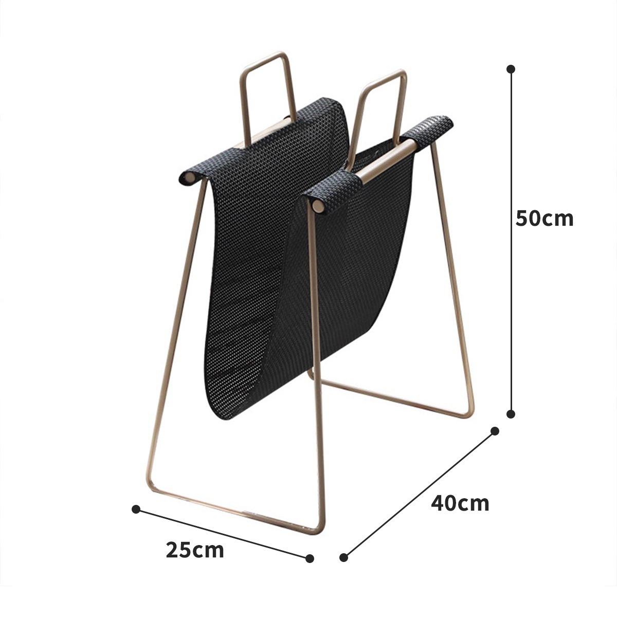 ・雑誌や新聞、小物も収納できるシンプルで実用的なデザイン。 ・アイアンフレームで耐久性が高くモダンな印象。 ・ソファ横やベッドサイド、コーナーに置いても圧迫感のないサイズ感。 ・バッグ型のユニークなフォルムでおしゃれな雰囲気を演出。 ・リビング、寝室、オフィスなど幅広いシーンに対応。 |